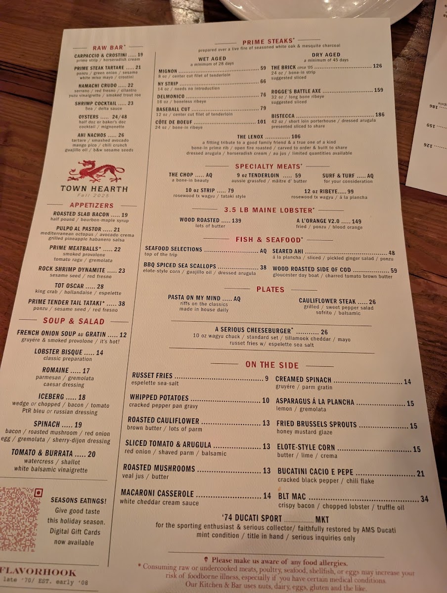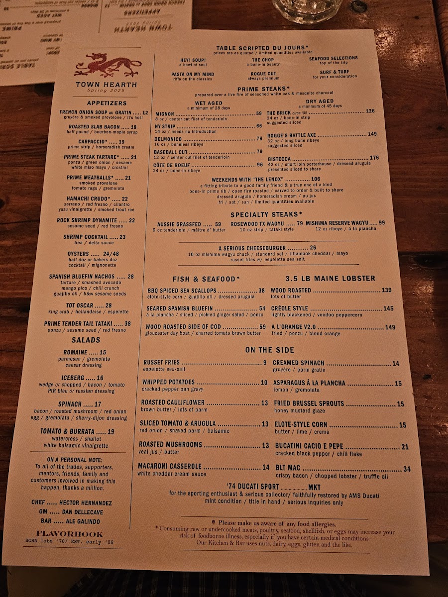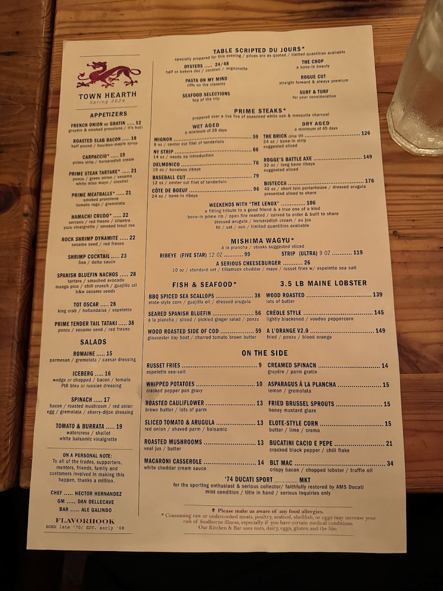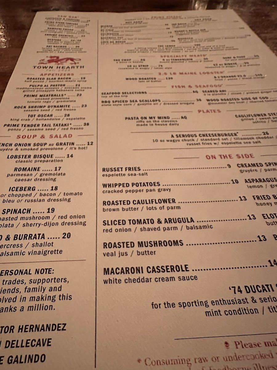 The menu at Town Hearth offers a thoughtful balance of classic steakhouse favorites with refined, contemporary touches. Guests can expect a well-curated selection that moves beyond traditional fare, featuring both hearty cuts like the 16 Oz Delmonico Steak and inventive dishes such as Carpaccio Au Poivre and Dry-Aged Meatballs. This approach makes the menu well-suited for a variety of occasions, from relaxed dinners to celebratory evenings.